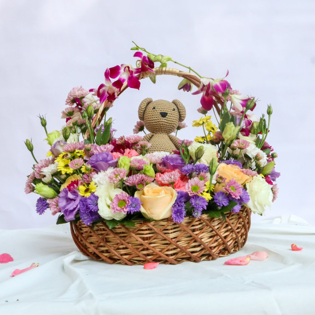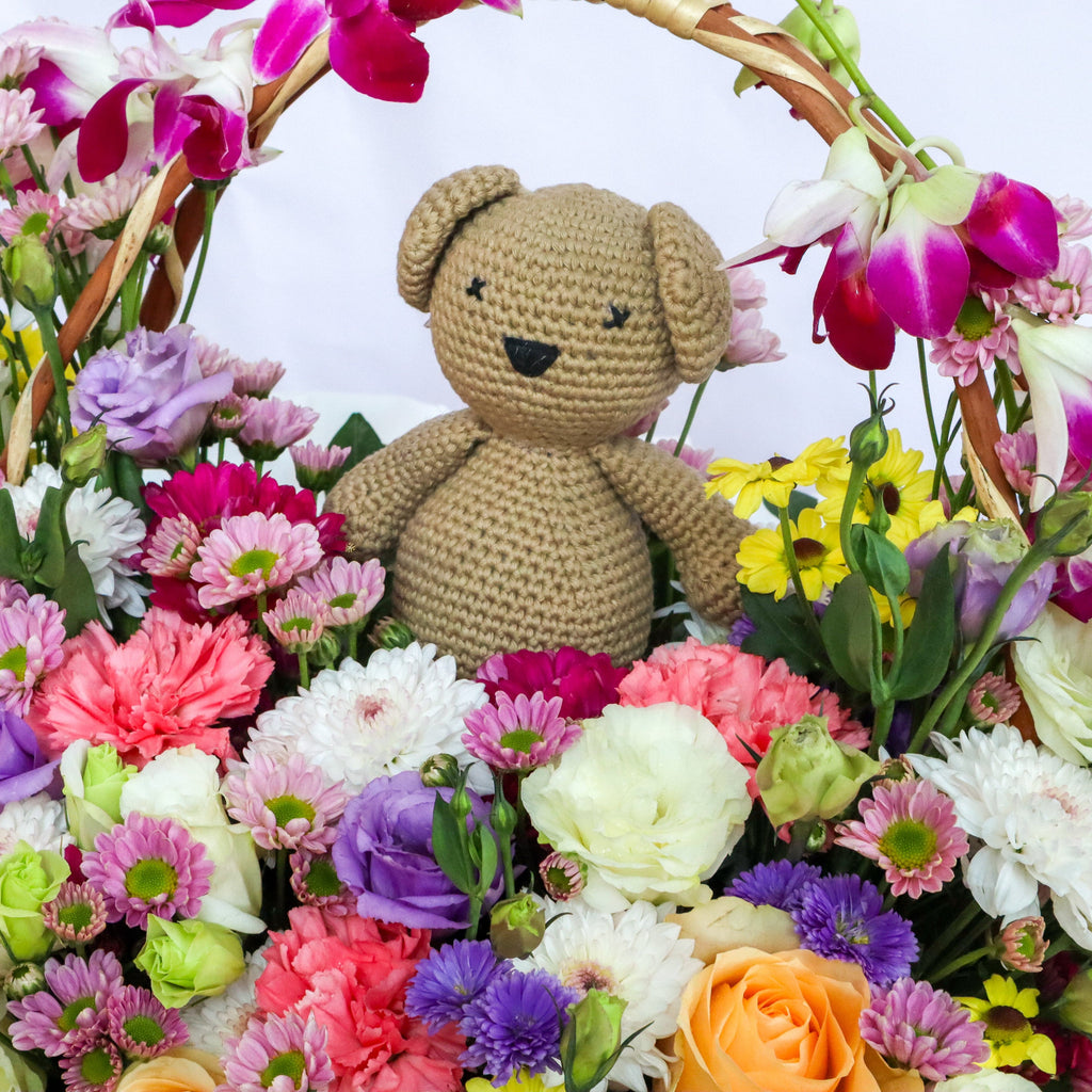Flowers to brighten the day, a teddy to hug every milestone. A little magic, a lot of love, and just enough charm for tiny fingers. The perfect debut gift for the littlest superstar.