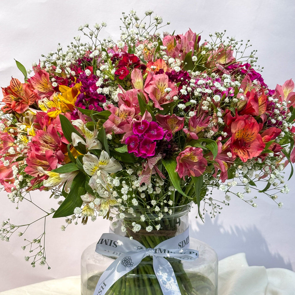 A thoughtful cluster of Inca Lilies, layered and luminous, sitting pretty in a jar. Equal parts delicate and dependable, much like the best kind of people.